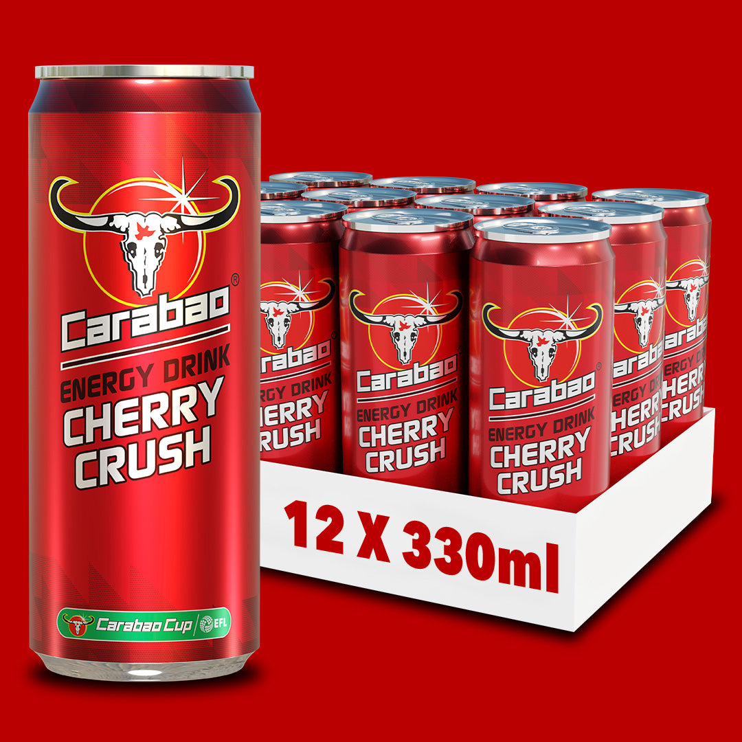 Carabao Energy Drink Cherry Crush is a refreshing and great tasting low calorie energy drink. Enjoy the distinctive taste of this light and refreshingly carbonated energy drink. Half the sugar of traditional energy drinks and only 41 calories per can. Contains taurine, caffeine and B vitamins which replenishes energy* and relieves fatigue*.